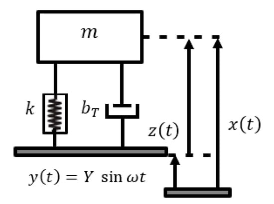 In Equation (1), is mass of the magnets, is the relative displacement between magnets and coils, is the restoring force (spring force, kz) on the moving magnets, and is the displacement of the harvester’s base (frame). Moreover, is the total damping coefficient, which is mechanical ( and electrical ( damping . Electrical damping coefficient can be expressed as , where is the electromechanical coupling coefficient and is the sum of internal impedance and load resistance across the harvester’s coil [33].