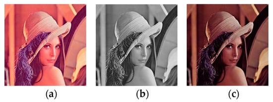 Another application that could be examined is the conversion of a color image to grayscale. By converting an image to grayscale, all of the RGB elements will be given the same value. This common value is calculated from a weighted average of the original RGB values of the input colored image []. The formula that is used to convert colored pixels to black and white is shown in (5) [].