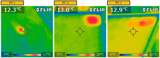 Hot spots captured in three different PV modules in the PV site C (Aberdeen PV site).