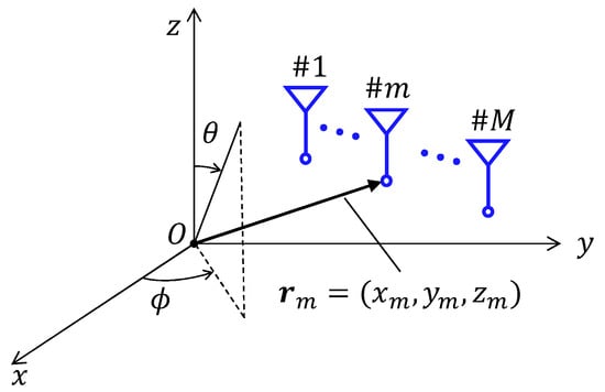 Figure 4 shows an M-element multi-antenna in a three-dimensional space. The complex pattern of the m-th antenna is defined as