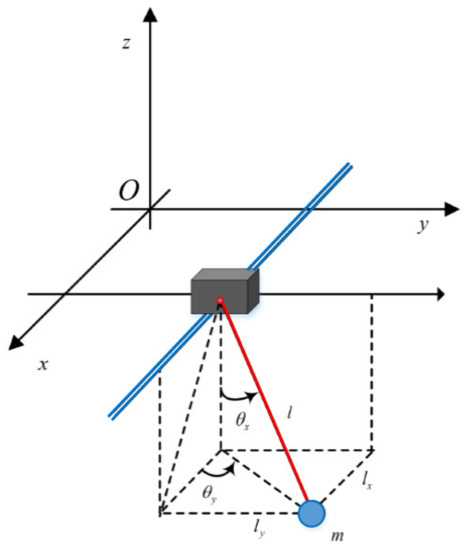 Practically, a 3D gantry crane comprises of three main components as presented in Figure 1: a bridge, which can move to the left or right; a trolley sliding forward or backward on the bridge; and a hoist to carry objects or cargo. Let us denote the trolley mass as , the bridge lumped mass as , the cargo mass as and the length of the hoist cable is . For the purposes of simplicity, we assume that the hoist cable length is fixed. The forces exerted on the trolley in the x-direction and y-direction are defined as and , respectively. We also denote as the sway angle of the payload and as the indirect dependent parameter of the oscillation component of the crane. Without a loss of generality, it is assumed that the static friction in the gantry crane is defined, and the mass of the hoist cable is trivial and ignored. Both the trolley and cargo are considered as the material particles.