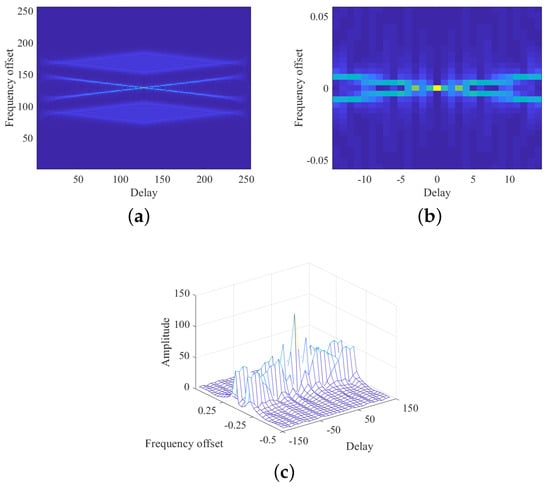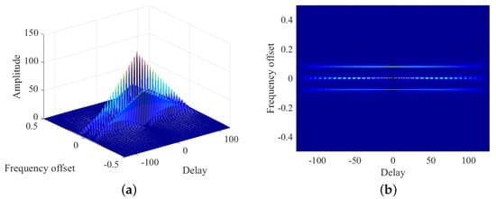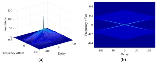 in which is time delay and is frequency offset. It is clear from (1) that when frequency offset is 0, the AF degenerates into the integral of autocorrelation function of the signal with respect to time. According to the definition of autocorrelation function, the maximum of AF is near the origin.