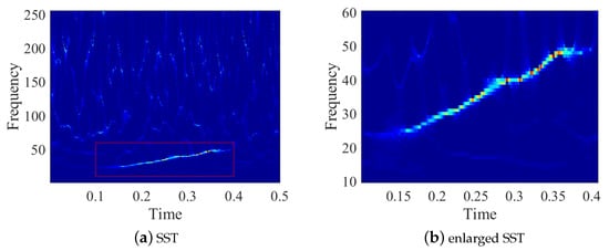 SST, proposed by Daubechies et al., is based on wavelet transform and empirical mode decomposition (EMD) []. SST is a post TF processing tool which compresses the spectrum in TFD by squeezing the energy distributed in a frequency range into some certain instantaneous frequency points. SST has been widely applied in many fields of biomedical signals, geographic signals, sonar signals, etc. [,].