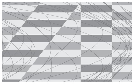 A security element (Figure 4) was based on two uniform raster fields formed by a linear raster with similar lines per inch and relative area of raster elements. Approximately grey level at 60–70% of the maximum for the raster lines in the first raster field and grey level at 15–20% of the maximum in the second raster field coincided, by size, with a basic guilloche element depicting dark areas in the first raster field and light areas in the second one (Figure 5).