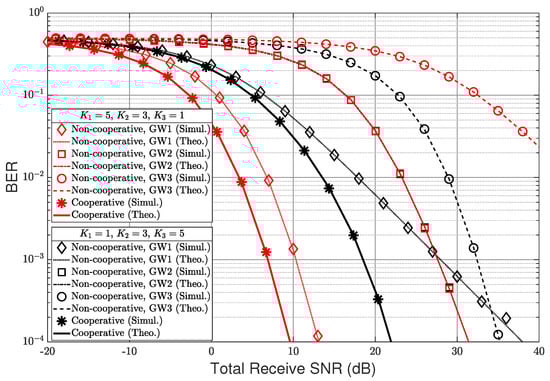 Now, we analyze the BER of the uplink cooperative technique. As in Equation (12), The conditional BER for given all channel gains, at the cloud server is given as