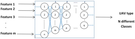 As a first step, the area to be covered is divided in sub-areas, each one has to be served by a specific UAV. By using available traffic patterns, each area can be classified on the basis of the number of users and their communication requirements by means of SL approaches. The obtained classification is then used to choose the most appropriate type of UAV. For instance, if we have N different UAVs with different features, an appropriate match for a subarea can be chosen among these UAVs. For a given time slot, when the feature of both area traffic and UAV is changed, the class of that area is changed to a new one and a new UAV is employed to cover the considered area. This new UAV can again be chosen from N different type of available UAVs (classification task), by choosing the one ensuring the best functionality in terms of hovering time, buffer size, capability to have a certain speed and different capability on their maximum altitude. Based on the data set that can be achieved in an offline manner, the aforementioned features can be chosen to be injected to an ML box. A schematic view of this process is given in Figure 7.