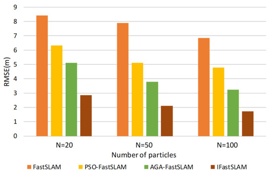 IFastSLAM has several advantages: AGA-Resampling can effectively improve the diversity of particles, and the iteration speed of PSO with fractional differential optimisation is increased, further improving the speed of SLAM. In addition, PSO optimised by chaos can avoid local convergence and can effectively improve the accuracy of SLAM.