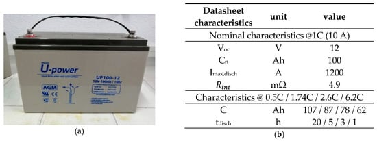 - U-POWER. UP SERIES-AGM Battery-UP100-12 Factory Datasheet. Available online: https://www.upowerbatteries.com/pdfs/UP100-12.pdf (accessed on 12 April 2020).