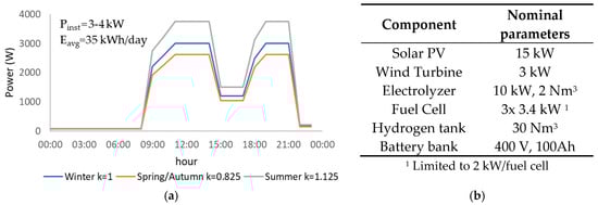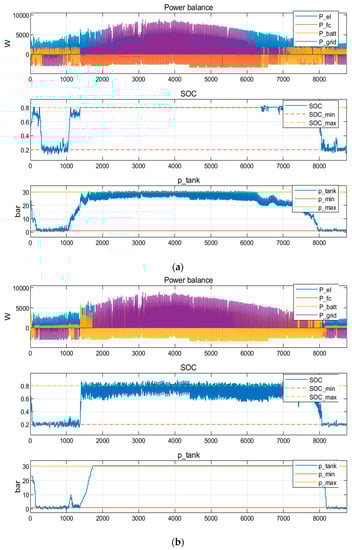 - Castañeda, M.; Cano, A.; Jurado, F.; Sánchez, H.; Fernández, L.M. Sizing optimization, dynamic modeling and energy management strategies of a stand-alone PV/hydrogen/battery-based hybrid system. Int. J. Hydrog. Energy 2013, 38, 3830–3845. [Google Scholar] [CrossRef]