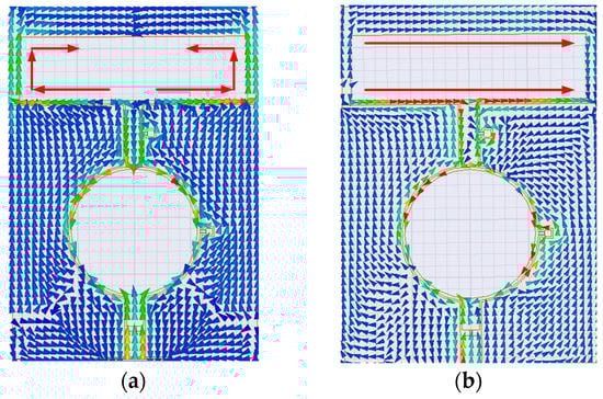 Simulated surface current distribution: (a) vertical mode and (b) horizontal mode.