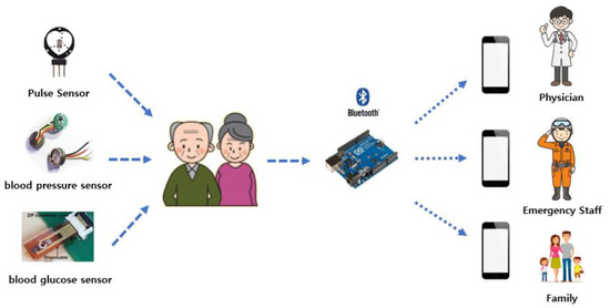 Mobile healthcare is expected to facilitate the prevention and management of diseases, since the sensor information can be obtained through mobile devices and the medical service area can be expanded to the observer rather than the medical institution center. Therefore, mobile healthcare systems can provide the users with ease of use, reduced risk of infection, reduced risk of failure, reduced user discomfort, and lower cost of care delivery [5,6].