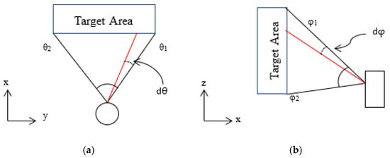 Illustration of field of view (FOV) of a typical 3D LiDAR scanner represented in orthogonal views. (a) Plane view; (b) side view.