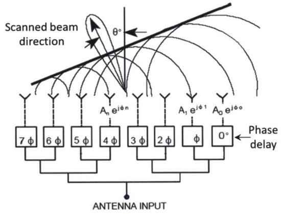 In the efforts of making the LiDAR smaller, cheaper, and faster, a research team from the Photonic Microsystems Group at the Massachusetts Institute of Technology (MIT) has proposed a solid-state LiDAR system on chip solution [69,70,71]. The proposed system utilizes a technique known as optical phased array (OPA) for steering the laser beam. On top of that, the entire system is fabricated on a single chip using silicon photonics platform. OPA is made of an array of light-emitting elements where the phase can be manipulated [72]. Figure 11 illustrates the working principle of an 8-element OPA. The light emitting element consists of three main components: a splitter, a phase controller, and an antenna [73]. The role of the splitter is to distribute coherent light to individual phase shifters. Next, the coherent source reaches the phase shifter block to alter its phase. This block is either realized with an opto-thermal or opto-electrical method. Finally, the modified signal is passed to the optical antenna to be emitted into free space. The antenna is either made of metallic or grating type. Currently, a maximum of 1024 array elements have been demonstrated [74].