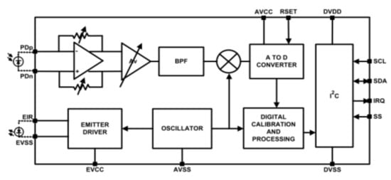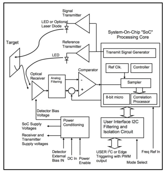 - ISL29501 Time of Flight (TOF) Signal Processing IC. 2017. Available online: https://www.renesas.com/sg/en/doc/datasheet/isl29501.pdf (accessed on 23 April 2020).