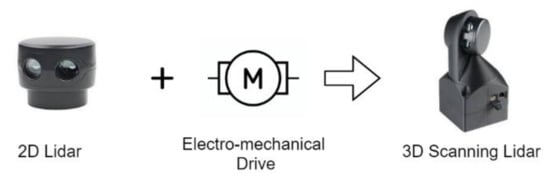 In the beginning of the 21st century, SICK LMS 200/291 [22] and Schemerack LSS 300 [23] were the two competing 2D LiDAR instruments in the market with reasonable price and good performance [24]. A complete teardown of the SICK LMS 291 LiDAR instrument manufactured in the year 2001 was demonstrated by [25]. The SICK LiDAR instrument has influenced researchers to initiate a new era of 3D LiDAR system research. This was the period when electromechanical scanning gained its popularity. Electromechanical scanning refers to the use of electric motors with a mechanical stage to extend the dimensionality of the 2D LiDAR system. To the best of our knowledge, Surmann and coworkers [24] were the first group of researchers to build a low cost 3D LiDAR instrument on the base of a 2D LiDAR system by an extension of a standard servo. In the following years, researchers in [24,26,27,28,29,30,31,32,33,34,35,36,37,38,39,40,41] have adopted this method to design 3D LiDAR systems for various applications.