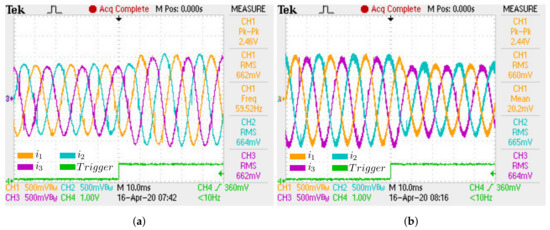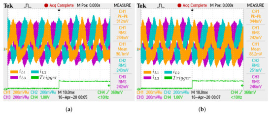 Inductor currents for RC load case: (a) Three-phase model; (b) Single-phase and three-phase