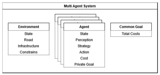 A multi-agent system consists of different agents which are located in the same environment and try to collectively reach a common goal. Using the example of the Sense–Plan–Act concept of an automated vehicle (AV) [5] and in accordance with the general MAS definition of Dorri et al. [6], we define an agent and its environment as an entity with the following properties: