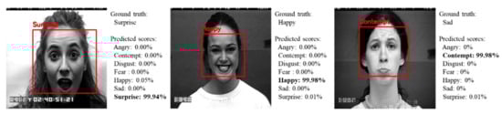 - Mollahosseini, A.; Chan, D.; Mahoor, M.H. Going deeper in facial expression recognition using deep neural networks. In Proceedings of the 2016 IEEE Winter conference on applications of computer vision (WACV), Lake Placid, NY, USA, 7–10 March 2016; pp. 1–10. [Google Scholar]