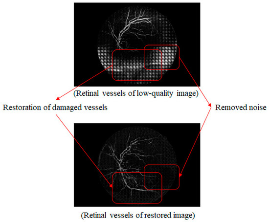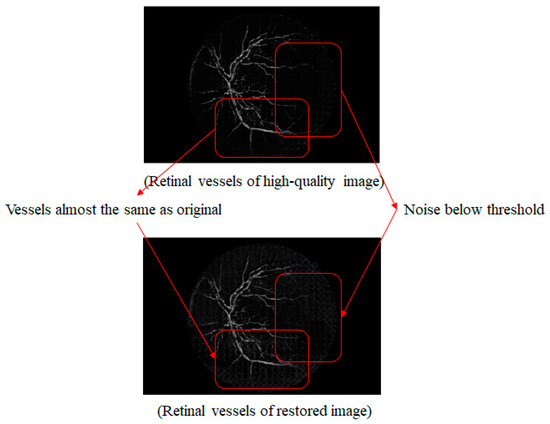 In addition, this type of study contributes toward future research by formulating a complex retina vessel structure model from an anatomic and ophthalmological perspective. When a patient with expert knowledge of the eyes has doubts about the physician’s diagnosis regarding their retinal images, clear retinal images can act as a basis for a re-diagnosis. Our results also contribute toward future studies on automating retinal image-based diagnoses.