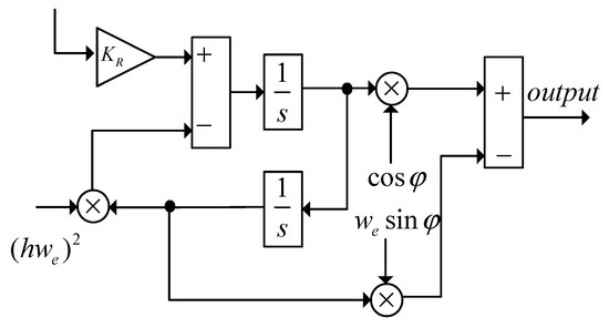 As proposed by A. G. Yepes in [19], the transfer function can be decomposed in a scheme with two integrators, as depicted in Figure 6, which is widely employed because it has the merits of discretizing the integrators separately and can adjust the frequency according to the operating frequency of motor.