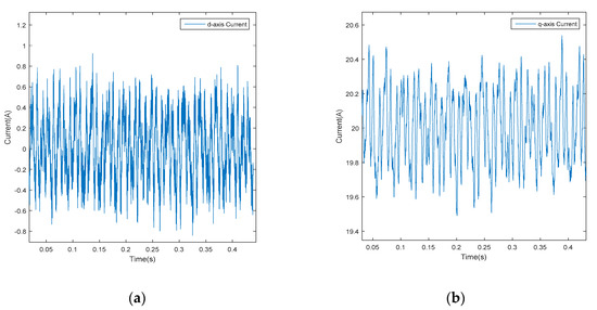 Experimental results after adopting the proposed control method in α-β subspace, (a) d-axis current and (b) q-axis current.