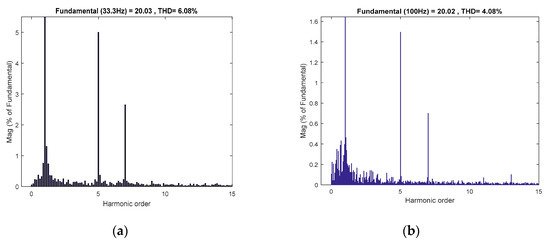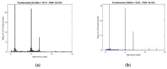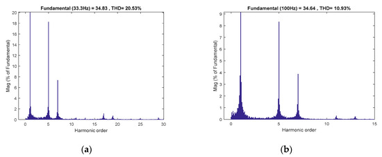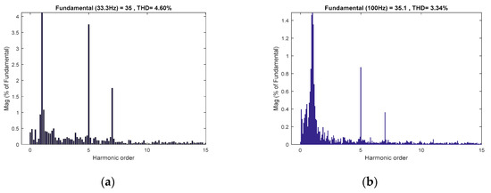 THD of phase A Current, (a) running at 500 r/min and (b) running at 1500 r/min.