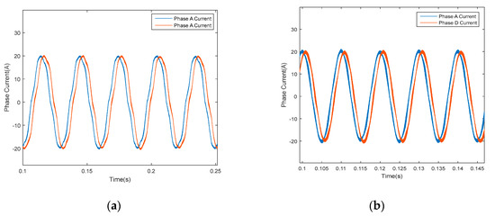 On the contrary, after adopting the proposed resonant controller in harmonic subspace, the waveforms of phase currents have been improved a lot, as shown in Figure 19. The THDs are reduced to 6.08% and 4.08% when the speed is 500 r/min and 1500 r/min, respectively, as depicted in Figure 20.