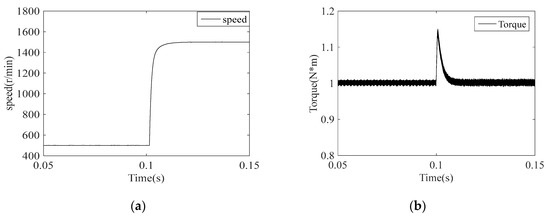 It can be seen from Figure 23 and Figure 24 that they can track the load torque quickly and the settling time is almost the same in both cases. Besides, the actual speed can follow the reference speed in both scenarios although the load torque changes. However, the speed waveform shows small fluctuations and the electromagnetic torque is smoother based on the suggested current regulator, which can also prove that the proposed current regulator can exhibit better performances and can have the merits of rapid dynamic response.