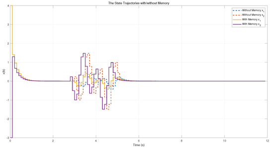 The state trajectories of the system with/without memory.