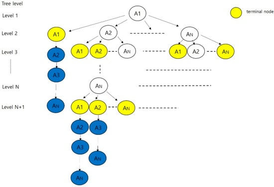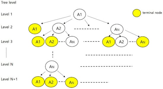 In Figure 6, each state is denoted as “An” where “n” is varied from 1 to N. The level of the tree is denoted as “l” and is varied from 1 to N + 1.
