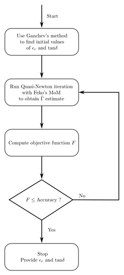 is computed. A flowchart representation of the inverse problem resolution by iterative techniques is shown in