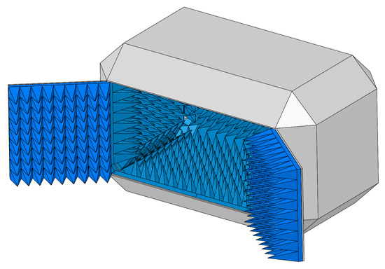3], the authors used the ray-tracing method to evaluate the reflectivity level of an anechoic chamber, in the frequency range 100–500