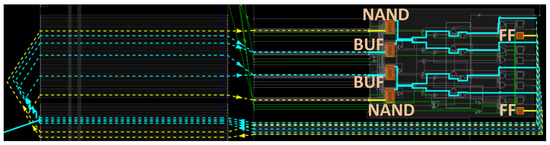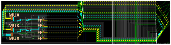 To achieve a higher uniqueness result, a balanced placement and routing of the PUF design is essential. Figure 12 shows the place and route for one stage of the FF-APUF design used in the proposed MMPUF design. The routing of each delay path is balanced by a fixed routing setting in Vivado to contribute equivalent delay time as other routing. The “FF” and “MUX” in Figure 12 represent the hardware components of FF and MUX on Xilinx 7 Series FPGA used in the FF-APUF design.