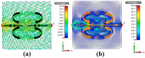 (a) Surface current distributions for branded diesel at 8.39 GHz and (b) unbranded diesel at 8.41 GHz.