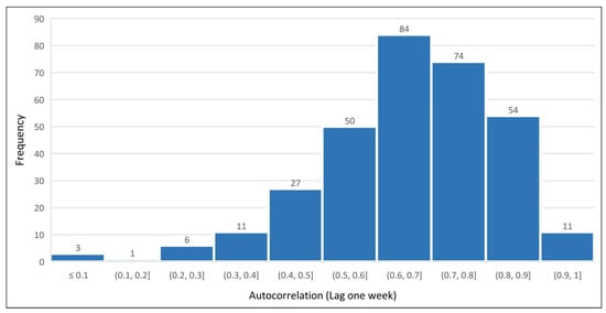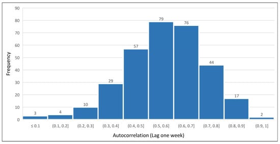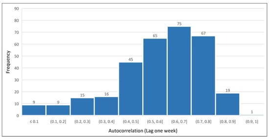 Considering the whole set of segments in the dataset and a 7 days lag, histograms shown in Figure 2, Figure 3 and Figure 4 highlight that the majority of the road segments present a consistent pattern repeating itself at 1 week period.