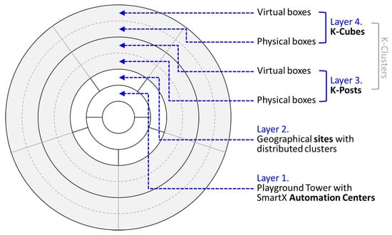 - Shin, J.-S.; Kim, J. Multi-layer Onion-ring Visualization of Distributed Clusters for SmartX MultiView Visibility and Security. In Proceedings of the 15th IEEE Symposium on Visualization for Cyber Security, Berlin, Germany, 22 October 2018. [Google Scholar]
