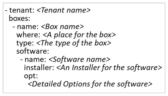 - Shin, J.-S.; Kim, J. Template-based Automation with Distributed Secure Provisioning Installer for Remote Cloud Boxes. In Proceedings of the 7th International Conference on Information and Communication Technology Convergence, Jeju, Korea, 19–21 October 2016. [Google Scholar]