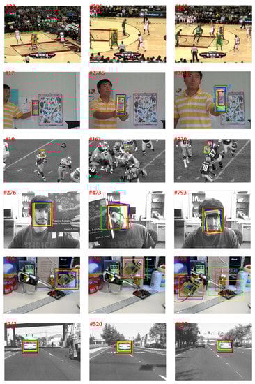 Visual tracking aims to estimate states of a moving object or multiple objects in frame sequences under different conditions. It has been considered as one of the most active and challenging computer vision topics with a large array of applications in autonomous driving, video content analysis and understanding, surveillance, and so forth. Although some improvements have been achieved in several tracking methods [,,,,,], computer vision researchers still aim to develop more robust algorithms capable of handling various challenges including occlusion, illumination variations, in-plane and out-plane rotation, background clutter, deformation, and low resolution.