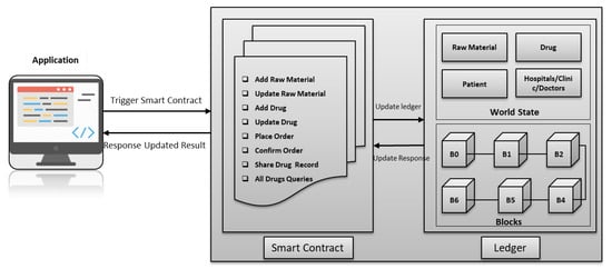 - Huang, Y.; Wu, J.; Long, C. Drugledger: A Practical Blockchain System for Drug Traceability and Regulation. In Proceedings of the 2018 IEEE International Conference on Internet of Things (iThings) and IEEE Green Computing and Communications (GreenCom) and IEEE Cyber, Physical and Social Computing (CPSCom) and IEEE Smart Data (SmartData), Halifax, NS, Canada, 30 July–3 August 2018; pp. 1137–1144. [Google Scholar]