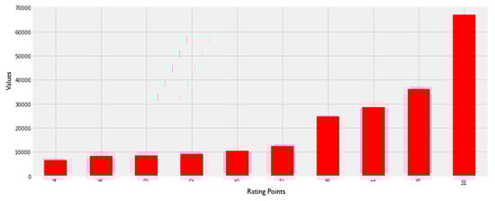 For checking the positive and negative review effect we have used the different emotion extractions techniques but the 4-gram classifier as compared to other grams is a better option to classify the emotions from comments and shows better results whether it’s a positive and negative review. Afterward, the rating provided in the dataset is analyzed by counting the weight of all the rating options: suppose how many times each value comes from 1 to 10. The rating weight according to mean is shown in Figure 7, where we can see that most of the customers gives four rating values 10, 9, 1 and 8 as well. Furthermore, most of the consumers give 10 rating points almost double than the others; it means that almost 69,000 drugs got more rating points from customers. Hence, the values of the positive comment are more than the negative. On the other hand, after analyzing the dataset, we have used preprocessing operations data cleaning, removal of missing values and sentimental analysis to eliminate some typos and errors in the dataset. After validation, all the missing values, typos and errors are removed from the dataset and its completely clean and ready to use for the machine learning module.