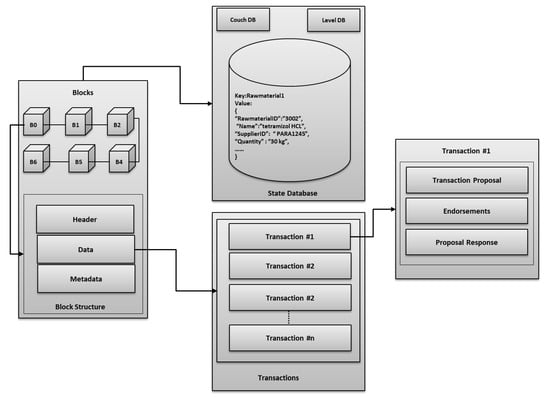 The ledger communication is shown in Figure 12. The world state database automatically updated the state value when the state is changed or performed some transactions. Two appropriate options Couch DB and Level DB are available for the world state database. The first option means level DB is default state database which stored the data of smart contract in key-value pair and exists within each pair node of the network. The second option is Couch DB which is an alternative solution to level DB and provides rich queries environment and modeled the smart contracts in the JSON file format. Therefore this is the best option while storing the large data and queries the actual data instead of key values. Furthermore, the Couch DB format and indexed the data in the JSON file format and store it instead of key-value pair. The results of the query in couch DB gives real data contents. It also supports all kinds of queries to access data content through the REST API. Due to these features, we used couch DB in our proposed system to store the data related to our network. In the Figure 12 drug asset record is stored in the ledger and it has a key-value pair. It can also store simple and complex key-value pairs as single and multiple values. On the other hand, the second part is blockchain, which has the ability to store the set of operations and changes occurs in the world state database in the form of transactions log. After that, these transactions can be stored in the form of blocks and connected together in a chain-like structure. The transactions are stored in a sequence in the blockchain network. The blockchain provides data immutability features; nobody can change or delete the data once stored.