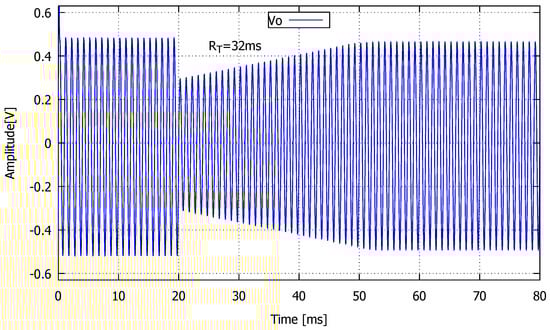 Analog AGC transient response for = 500 mV, with = 32 ms.