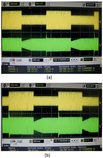 Analog AGC experimental results by setting: (a) = 500 mV and (b) = 700 mV.