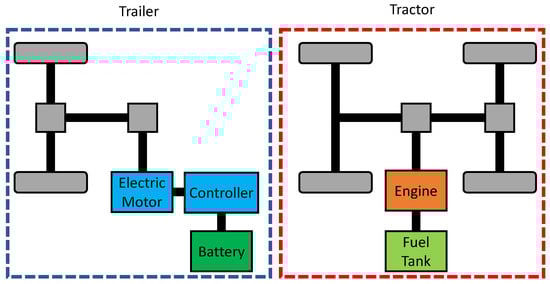In Reference [52], a Cyber-Physical System (CPS) with a previous knowledge of road elevation to achieve the optimum fuel consumption was proposed. In the first part of the work, a TTR powertrain applied to a truck, whose architecture is shown in Figure 10, is proposed. In the second part, the proposed Average Power-based Model Predictive Controller (AP-MPC) is used for the energy management problem for this TTR hybrid vehicle with only road elevation known a-priori.