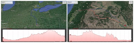 (Left) Path A: Romulus, MI, to Columbus, OH, USA (Right) Path B: Boise, ID, to Portland, OR, USA [52].