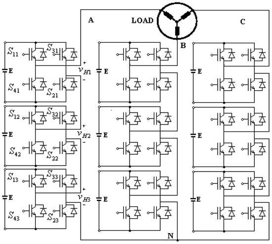Topology of a cascaded H-bridge (CHB) inverter.