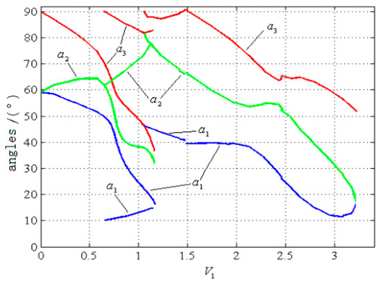 According to Equations (15) and (17), we get 1.4172 ≤ U1 ≤ 1.4523, which meets the fundamental current amplitude conditions. Thus, the first set of solutions can be obtained. Then, the limit value, which met Equation (17), should be substituted into Equation (16), and the other set of switch angles can be obtained. After determining the range, the process above can be repeated and another set of solutions can be obtained. All switch angles can also be obtained.