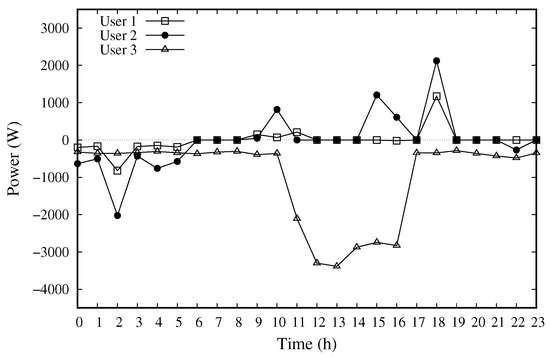 Figure 3 and Figure 4 show the profiles of the three prosumers with the Separated and the Unified model, respectively. In the figures, positive values correspond to the injection of energy by the user (either to the community or to the external grid), while negative values correspond to the withdrawal of energy from the community or from the grid.