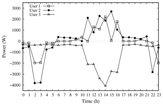 In detail, Equation (2) describes the energy balancing for each user and at each hour :