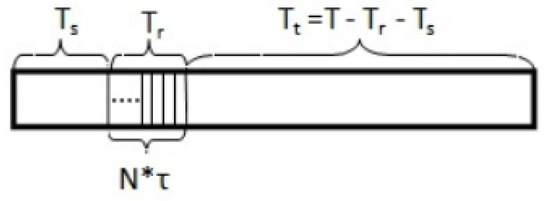 Frame structure for CVNs with periodic spectrum sensing (: sensing slot duration; : reporting slot duration; : data transmission slot duration).